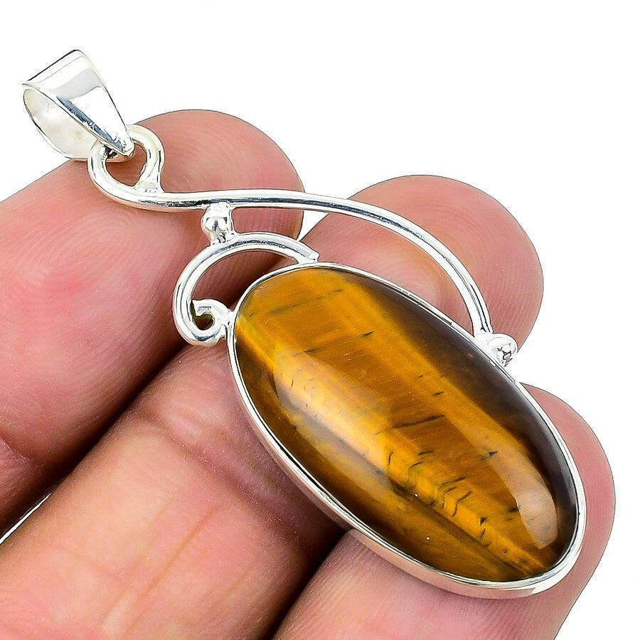 Tiger Eye Gemstone 925 Silver Engagement Birthday Boho Wife New Pendant Jewelry