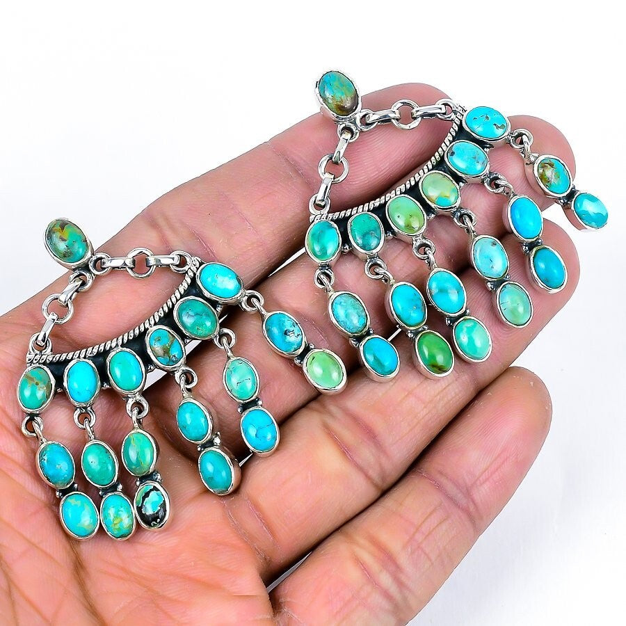 Arizona Turquoise Gemstone Sterling Silver Anniversary Dangling Earrings Jewelry