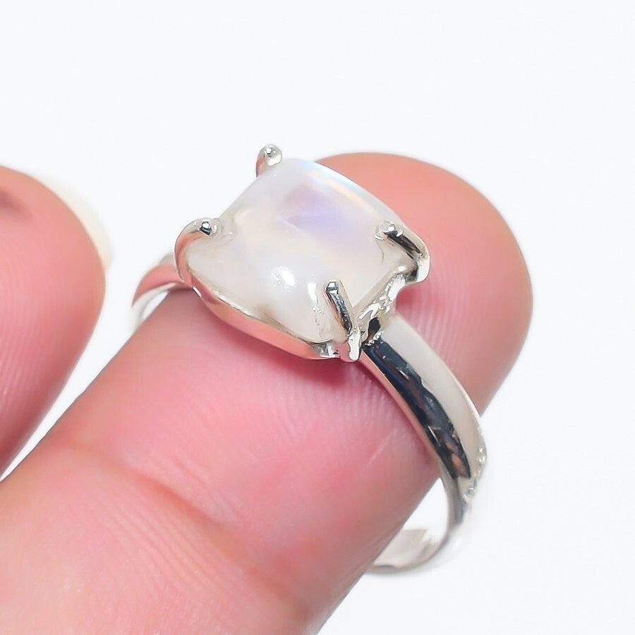 Natural Rainbow Moonstone Anniversary Statement Ring Jewelry 925 Sterling Silver