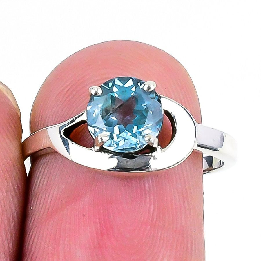 Daughters Day Sale Swiss Blue Topaz Stone 925 Silver Statement Wife Ring Jewelry