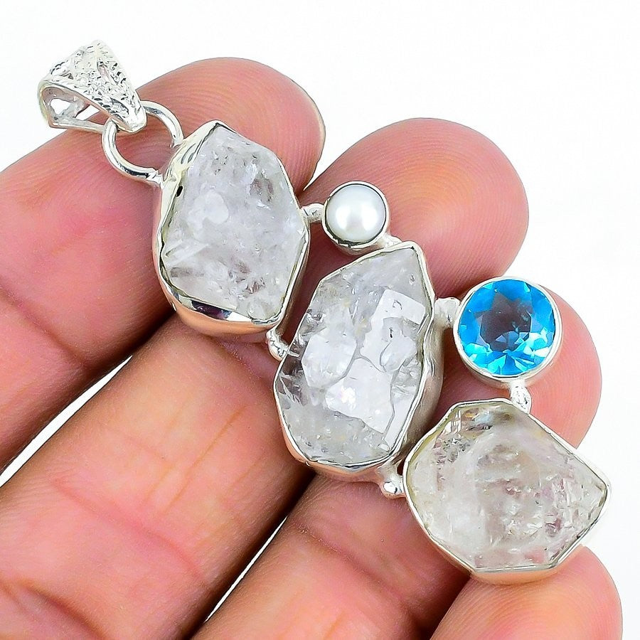 Herkimer Daimond Stone 925Ā SolidĀ Silver Sister Daughters Day Channel Set Pendant