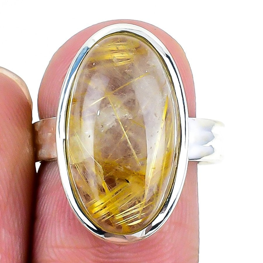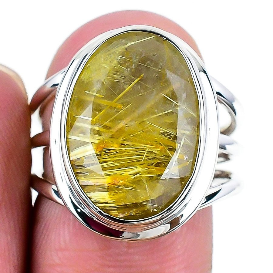 Golden Rutile faceted Gemstone Solid Sterling Silver Statement Ring Jewelry US 7