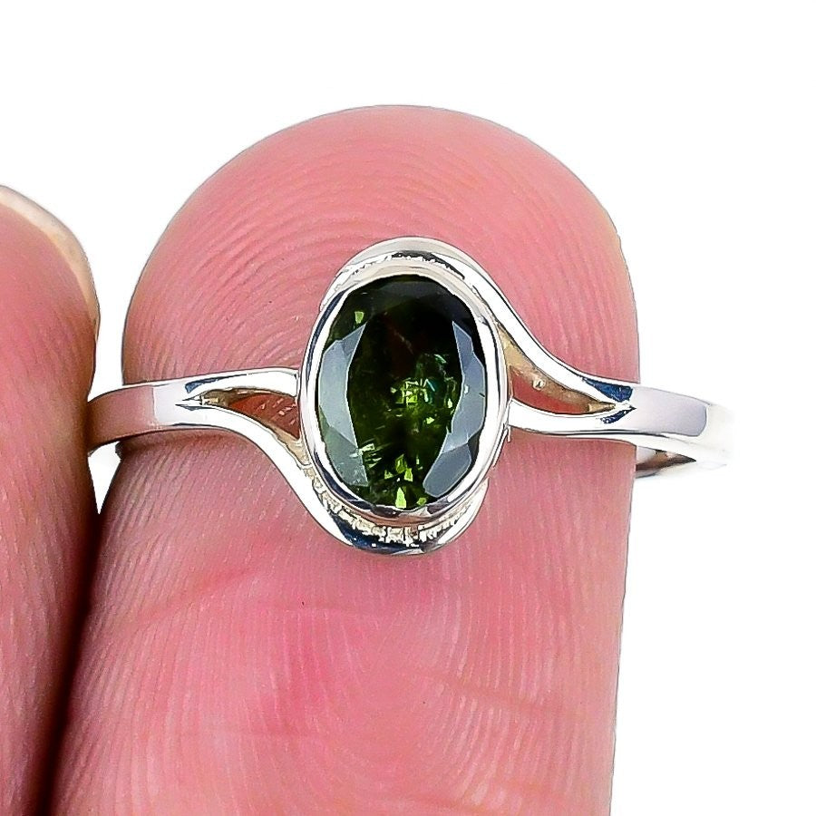 Green Tourmaline Stone 925 Silver Daughters Day Boho Statement Wife Ring US 7.5