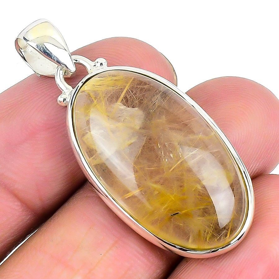 Natural Golden Rutile Sterling Silver Daughters Day Handcrafted Pendant Jewelry