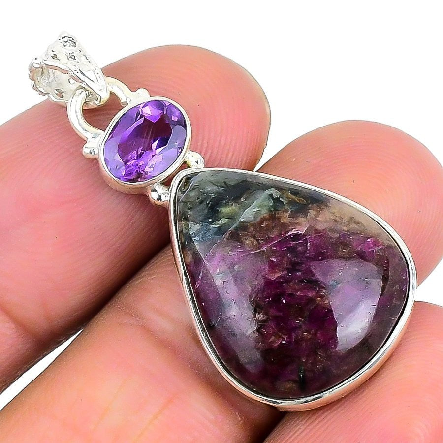 Natural Eudialyte 925 Silver Daughter Gift Channel Set Birthday Handmade Pendant