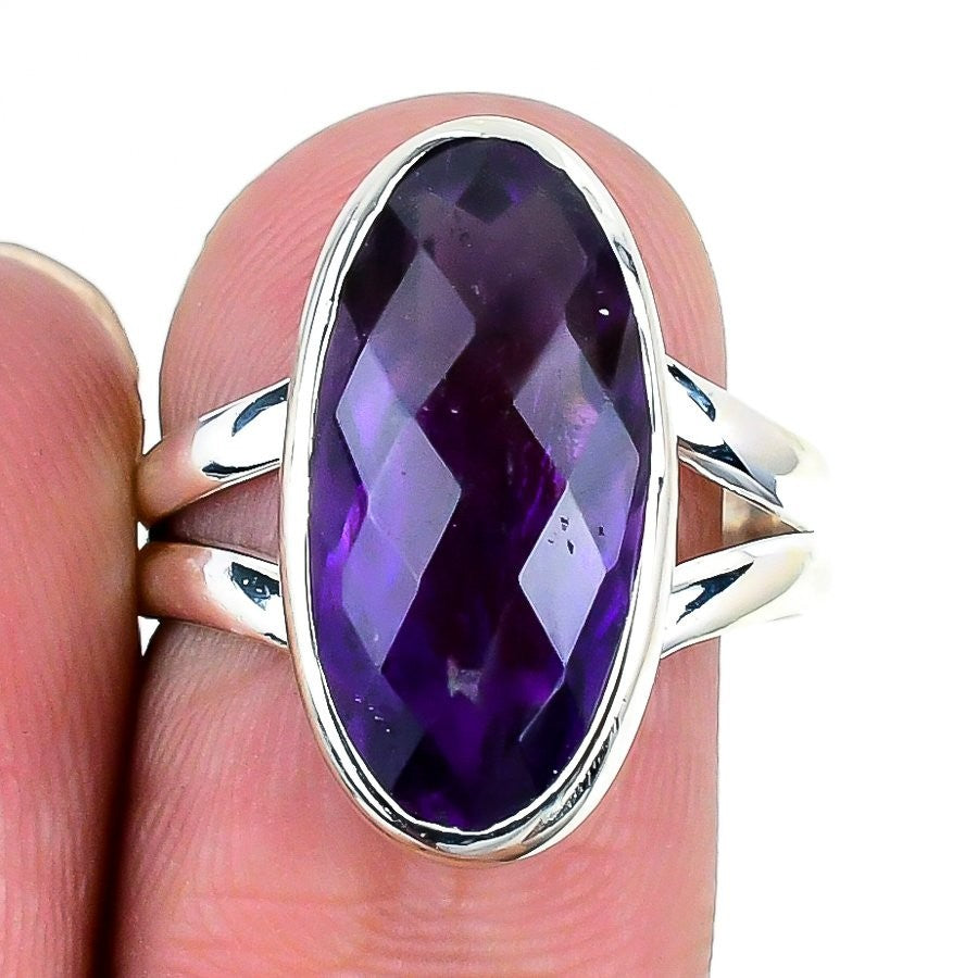 Natural Amethyst Solid Sterling Silver Statement February Ring Jewelry US 8.5