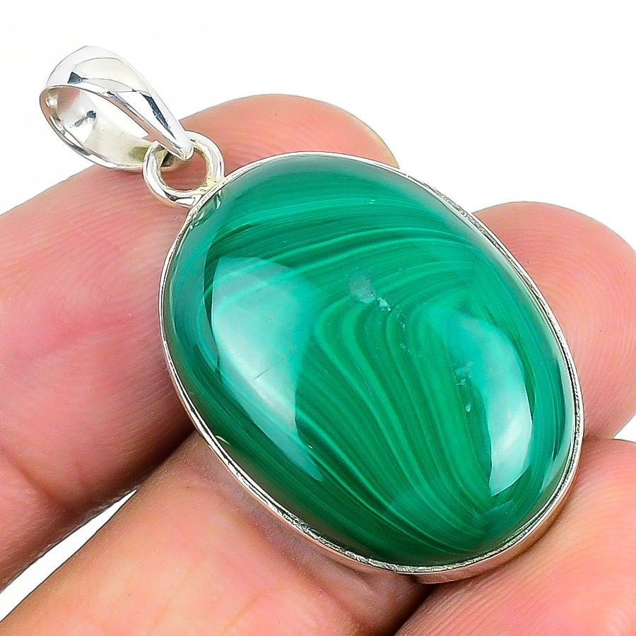 Daughters Day Deal Malachite Gemstone 925Ā SolidĀ Silver Mother Wedding Pendant