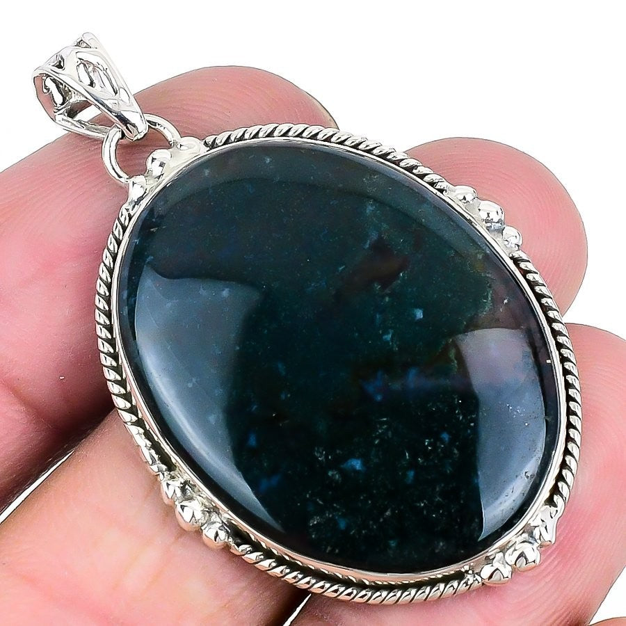 Moss Agate Gemstone Sterling Silver Sister Channel Set New Boho Pendant Jewelry