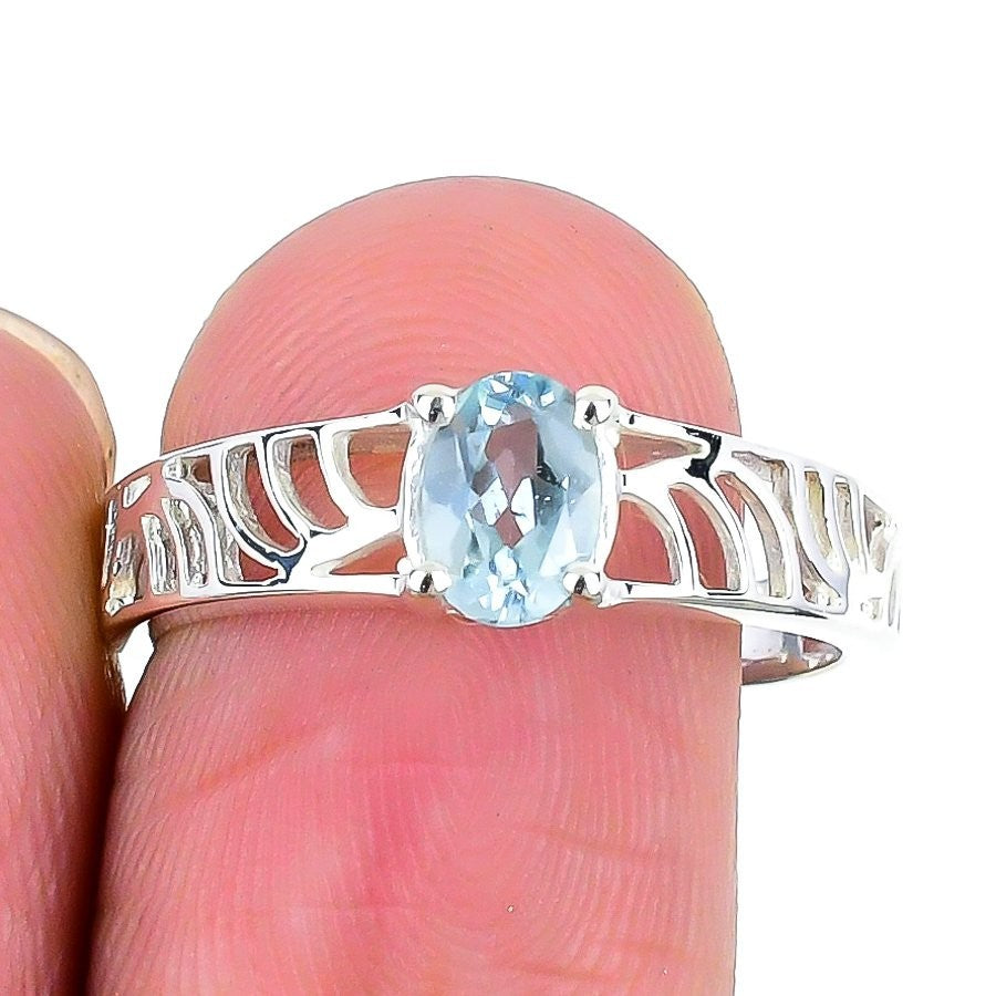 Natural Blue Topaz 925Ā SolidĀ Silver Statement Throat Chakra Ring Jewelry US 7.5