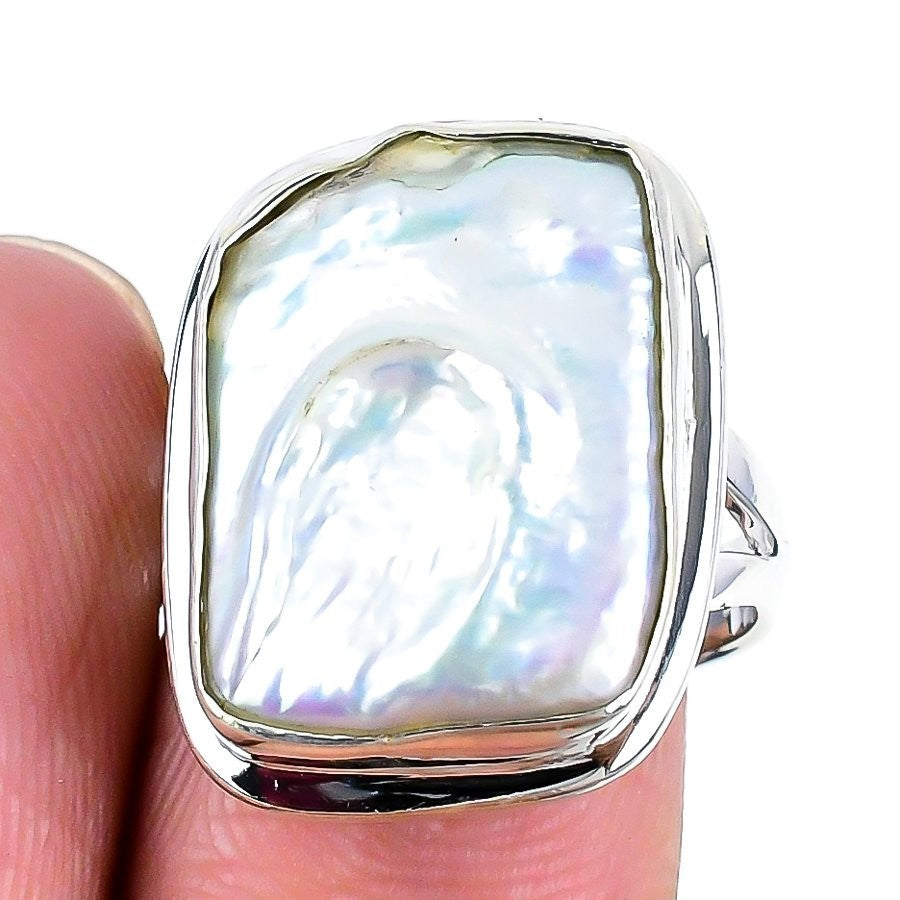 Blister Pearl Gemstone Statement Birthday Ring Jewelry Size 8 925Ā SolidĀ Silver