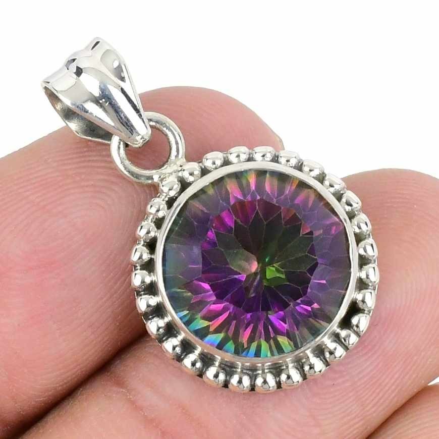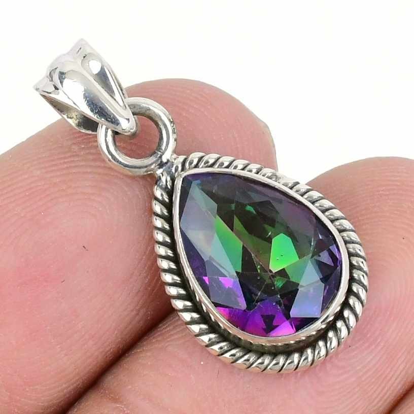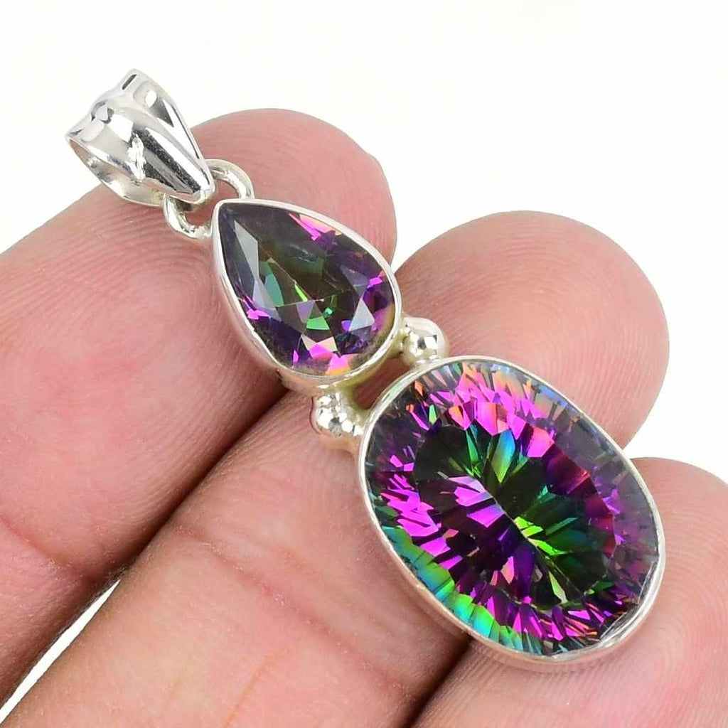 Rainbow Mystic Topaz Stone Sterling Silver Wife Trendy Birthday Elegant Pendant