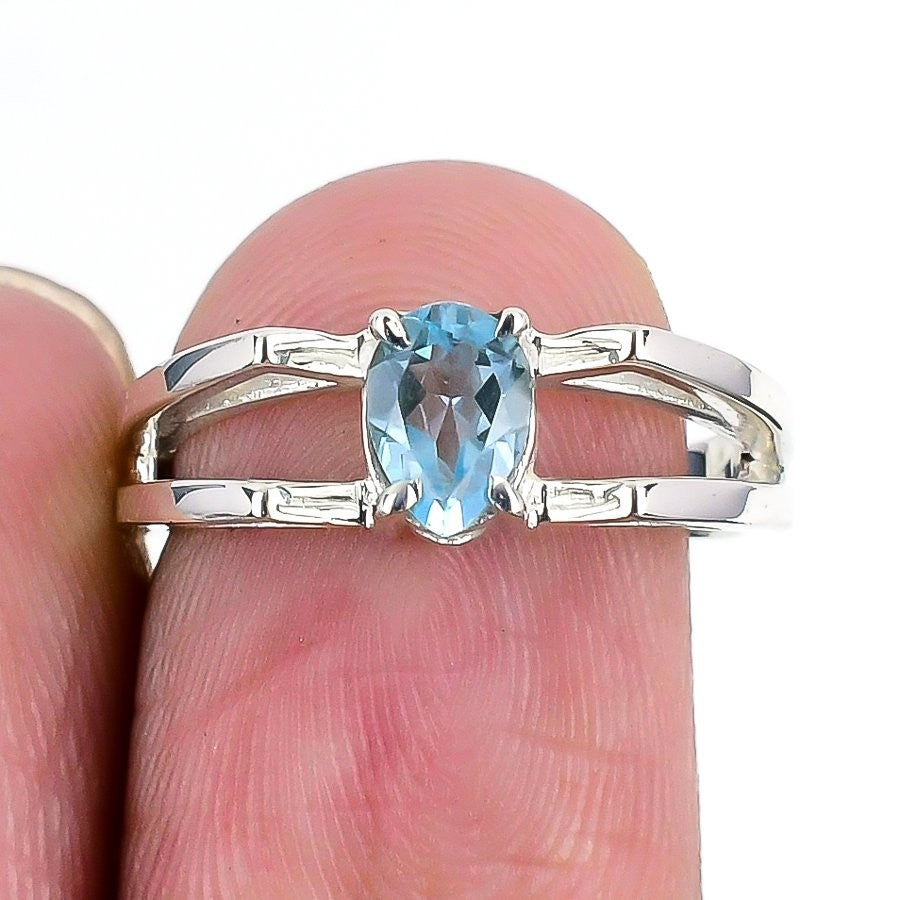 Swiss Blue Topaz Stone 925 Silver Elegant Statement Daughter Gift Ring Size 7