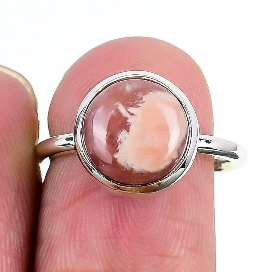 Natural Rhodochrosite 925Ā SolidĀ Silver Trendy Statement Birthday Boho Ring US 7