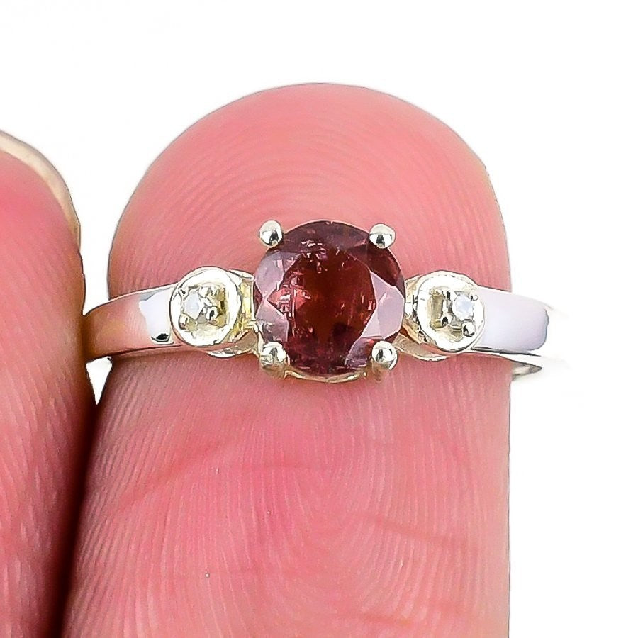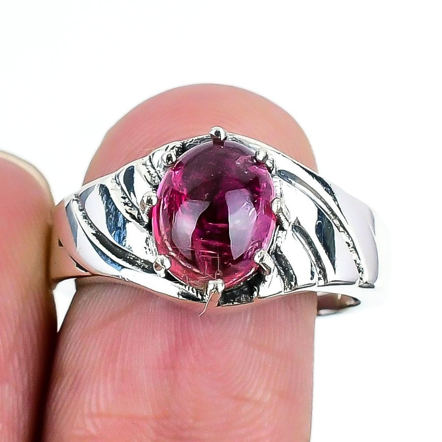Natural Pink Tourmaline 925 Silver Bezel Wedding Boho Statement Ethnic Ring US 7
