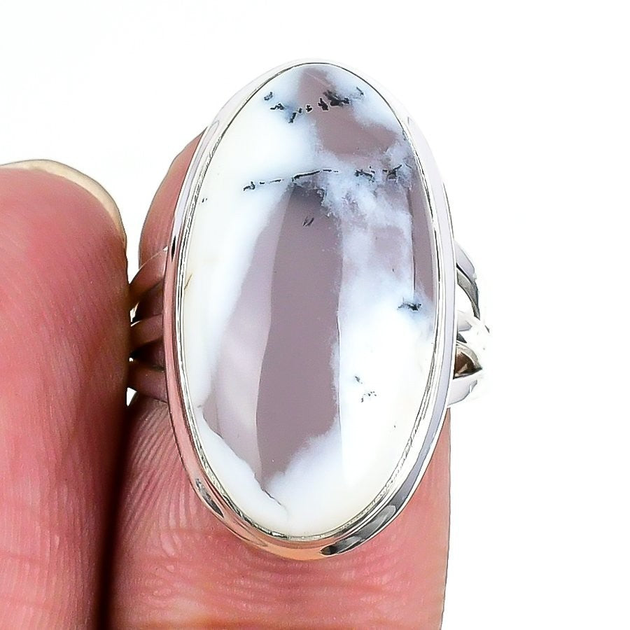 Dendrite Opal Gemstone 925 Sterling Silver Boho Statement Ring Jewelry Size 6.5