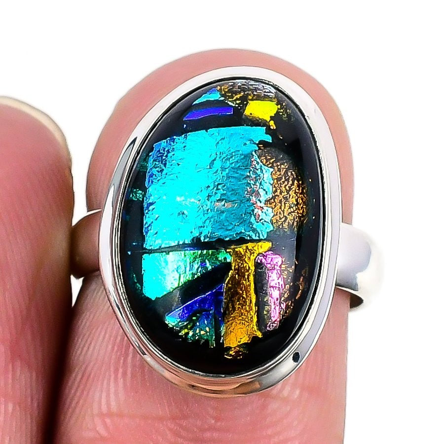 Natural Mexican Dico Glass 925Ā SolidĀ Silver Daughter New Statement Ring Size 6.5