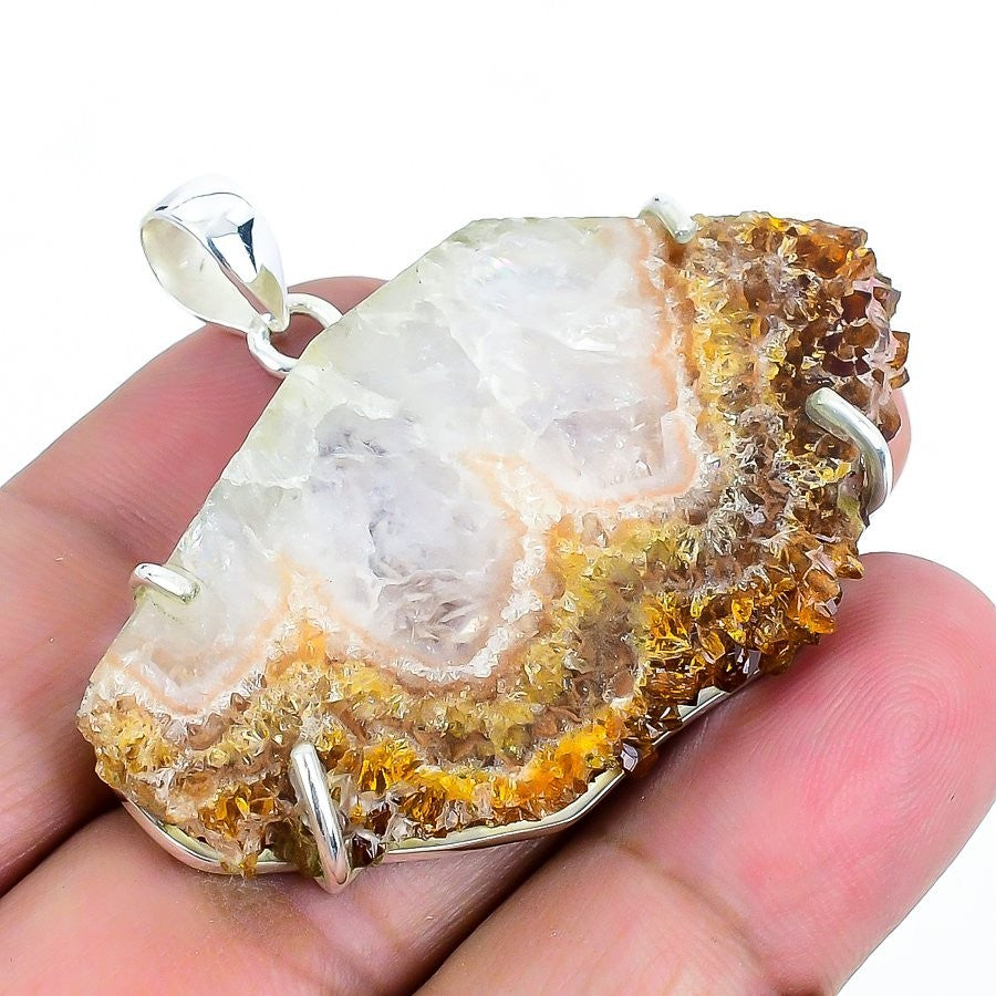 Natural Citrine Druzy 925 Sterling Silver Wife Boho Anniversary Pendant Jewelry