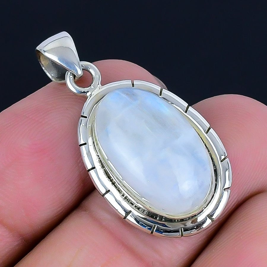 Natural Moonstone Solid Silver Anniversary June Birth Trendy New Pendant Jewelry