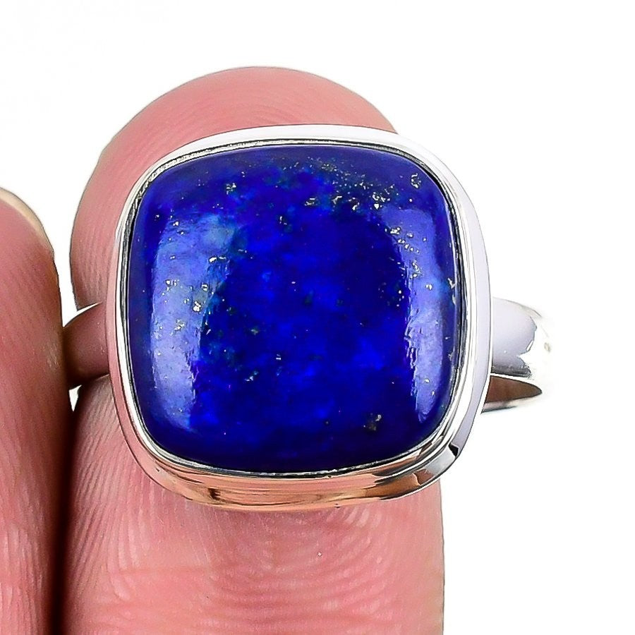 Lapis Lazuli Gemstone Birthday Wedding Statement Ring Size 11.5 Sterling Silver