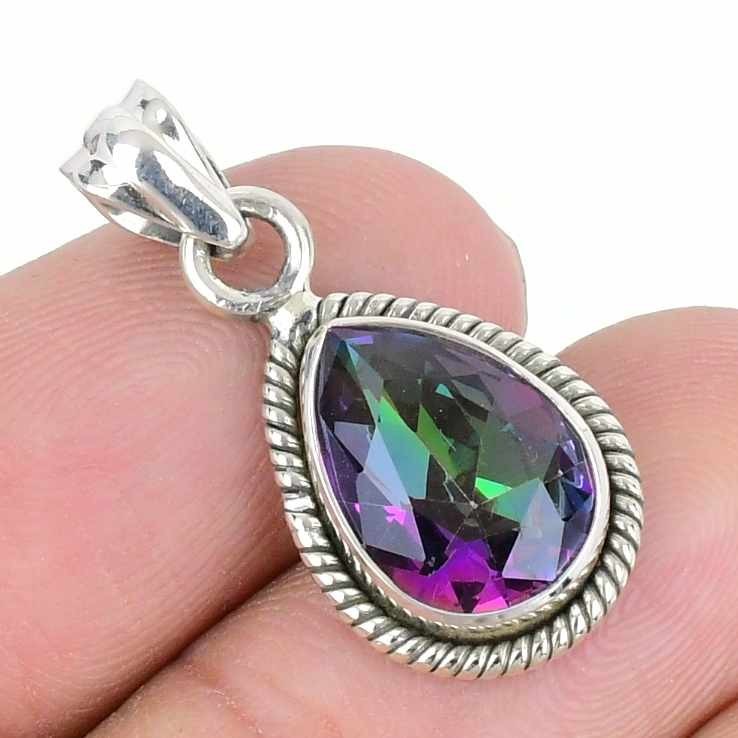 Rainbow Mystic Topaz Stone Solid Sterling Silver Best Daughters Gift New Pendant