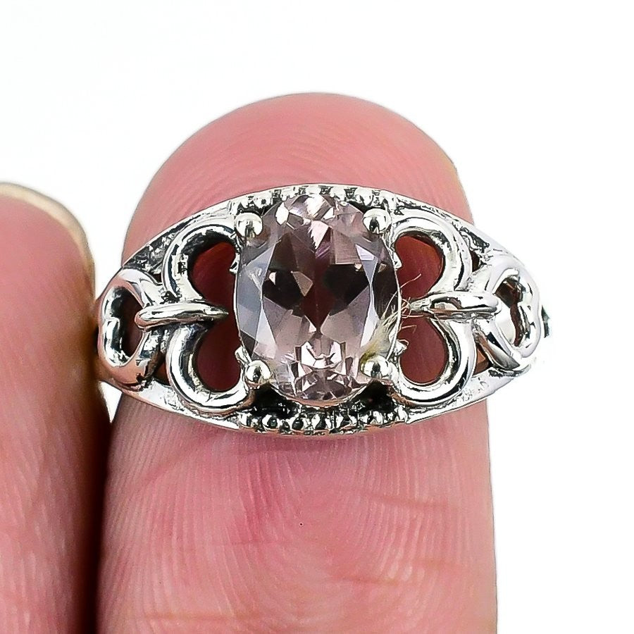 Pink Tourmaline Gemstone New Statement Bezel Wife Wedding Ring Solid Silver US 6