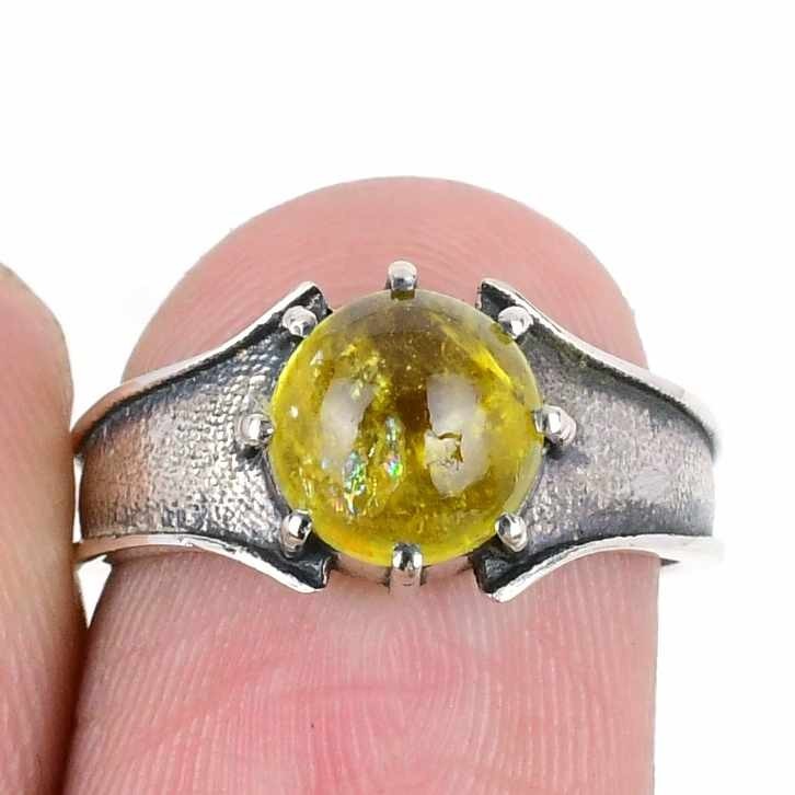 Natural Golden Rutile Solid Sterling Silver Birthday Unique Cluster Ring Size 6