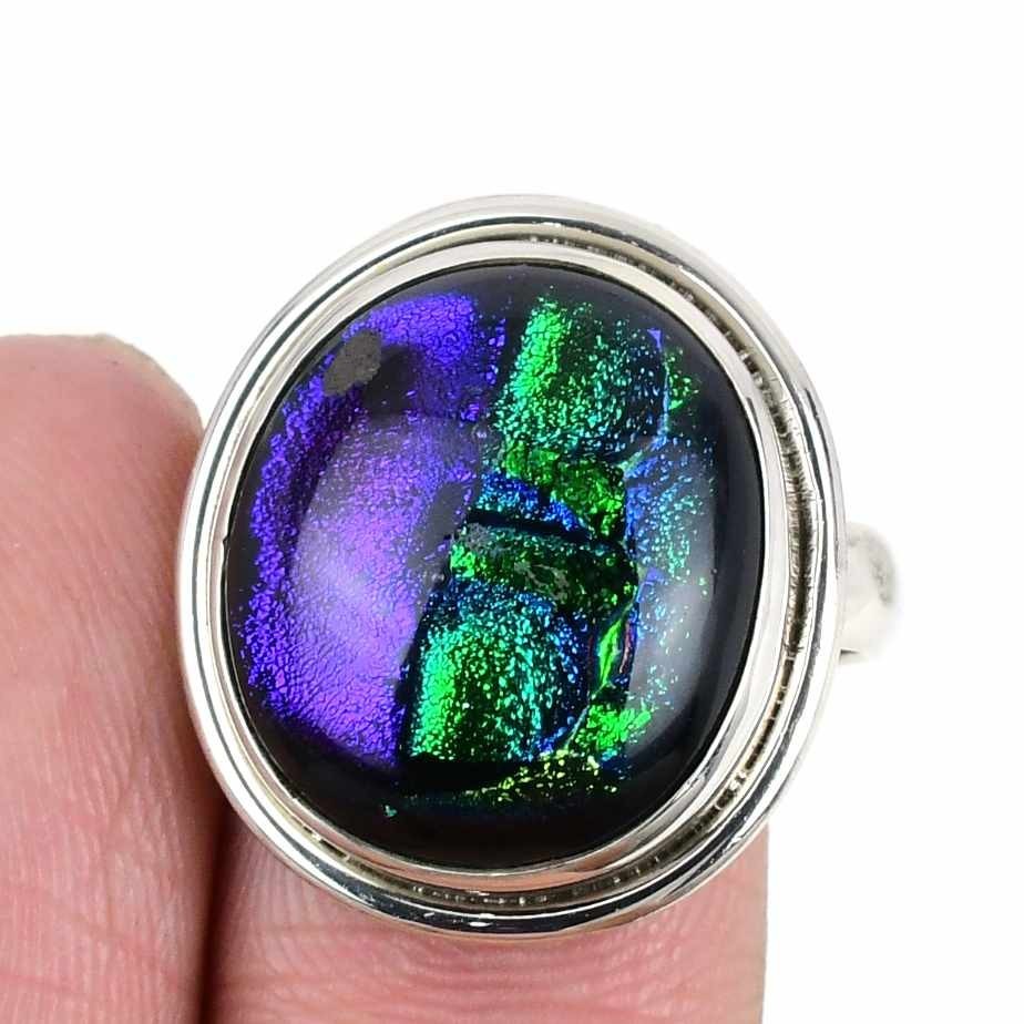 Mexican Dichoric Glass Gemstone 925Ā SolidĀ Silver Cluster Ring Jewelry Size 8.5