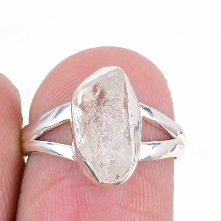 Herkimer Diamond Gemstone Cluster Daughter Gift Ring Size 8.5 Sterling Silver