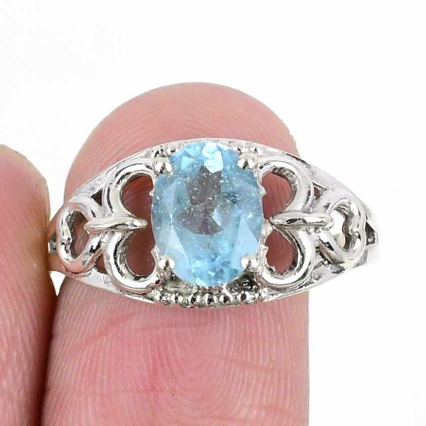 Swiss Blue topaz Gemstone 925Ā SolidĀ Silver Cluster Birthday Ring Jewelry Size 8