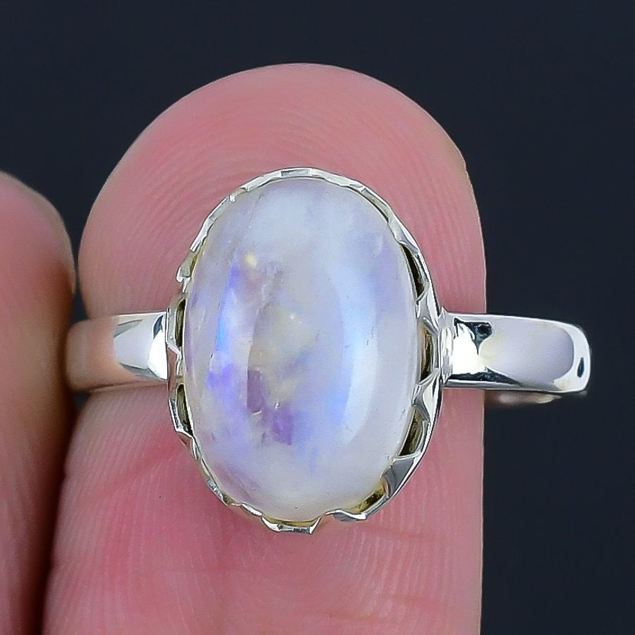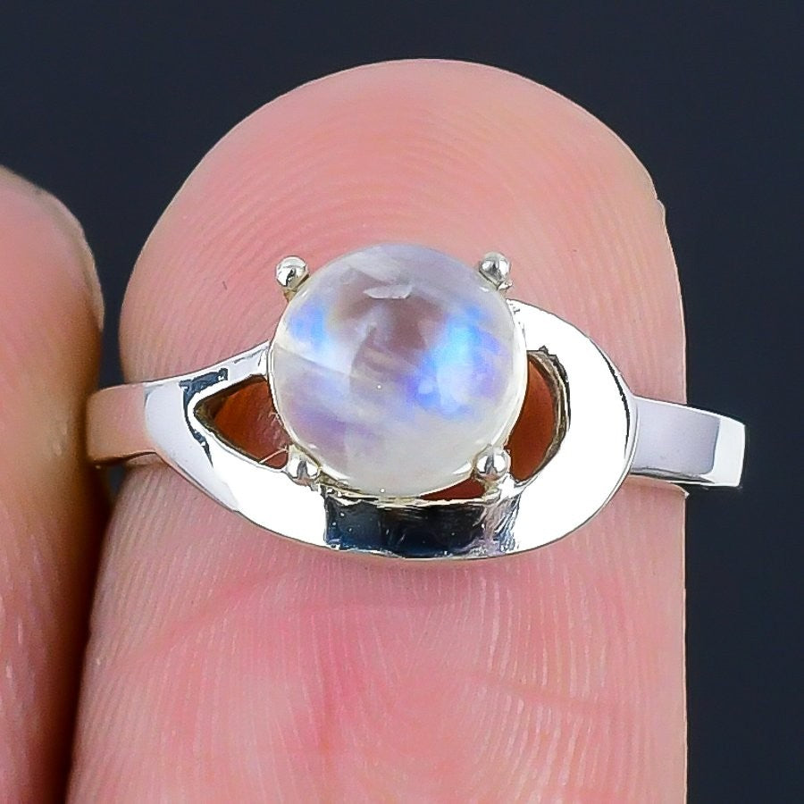 rainbow Rainbow Moonstone Stone Wife Cluster Ring Jewelry Size 6 Sterling Silver