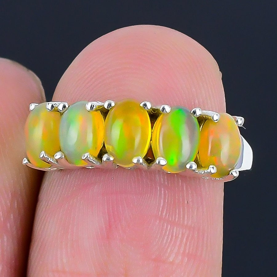 Ethiopian Opal Stone Solid Silver Unique Sister Elegant Cluster Boho Ring Size 6