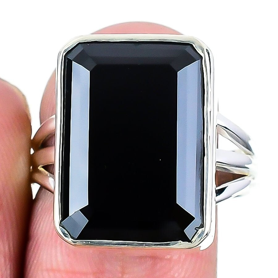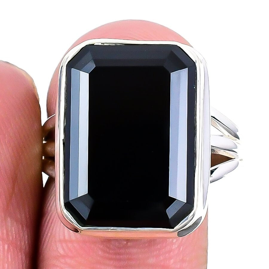 Mothers day Deal Natural Black Spinel Solid Silver Cluster Elegant Ring Size 9