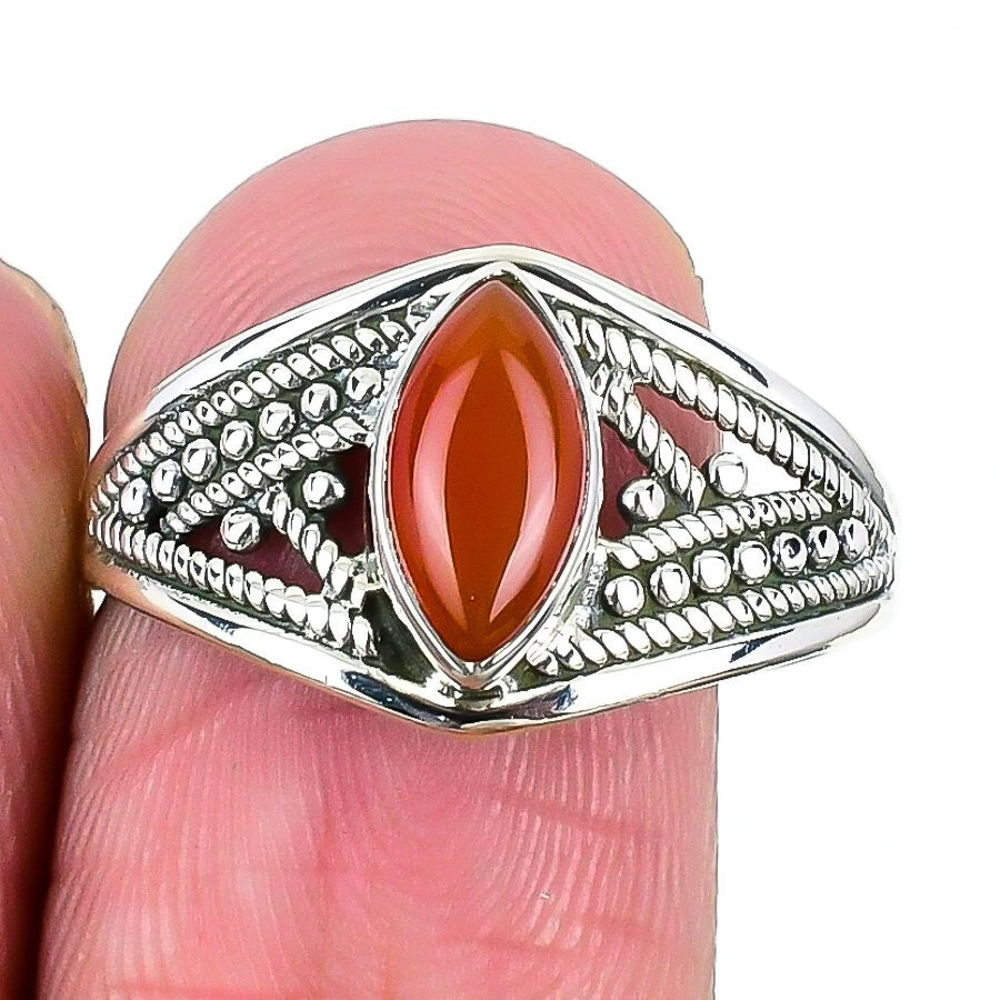 Natural Carnelian Sterling Silver Wife Handmade Cluster Art Deco Ring Size 9.5