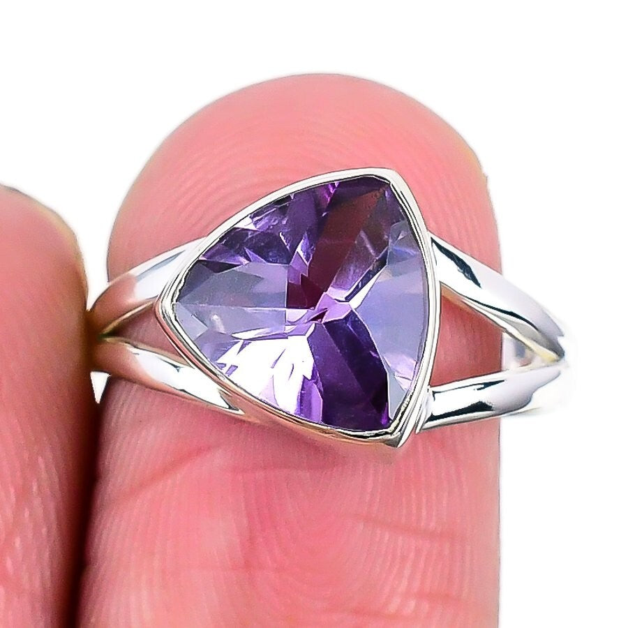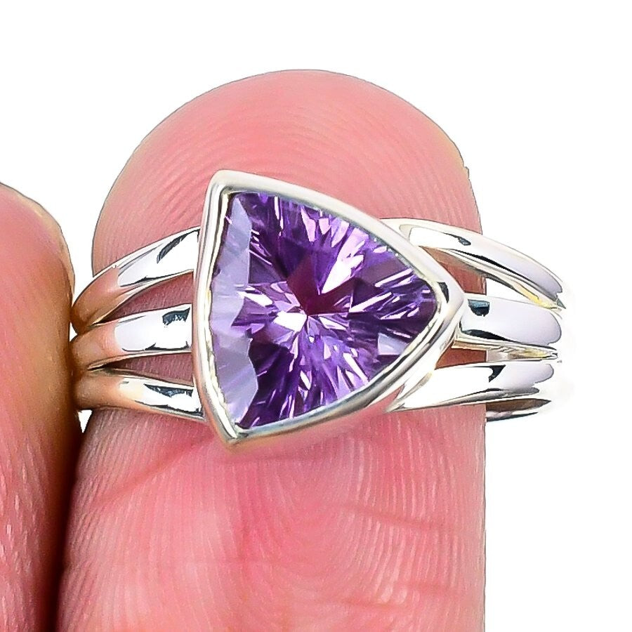 Mothers day Sale Amethyst Gemstone 925 Silver Cluster Crown Chakra Ring Size 8.5