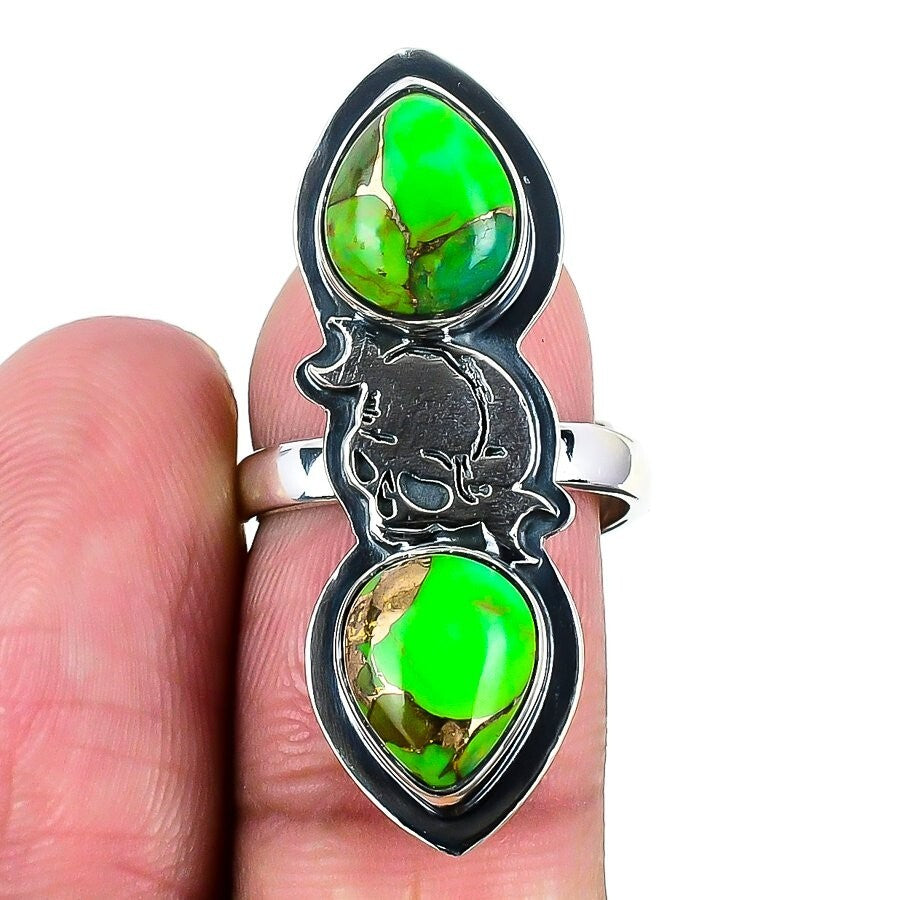 Copper Green Turquoise Gemstone Sterling Silver New Cluster Ring Size Adjustable