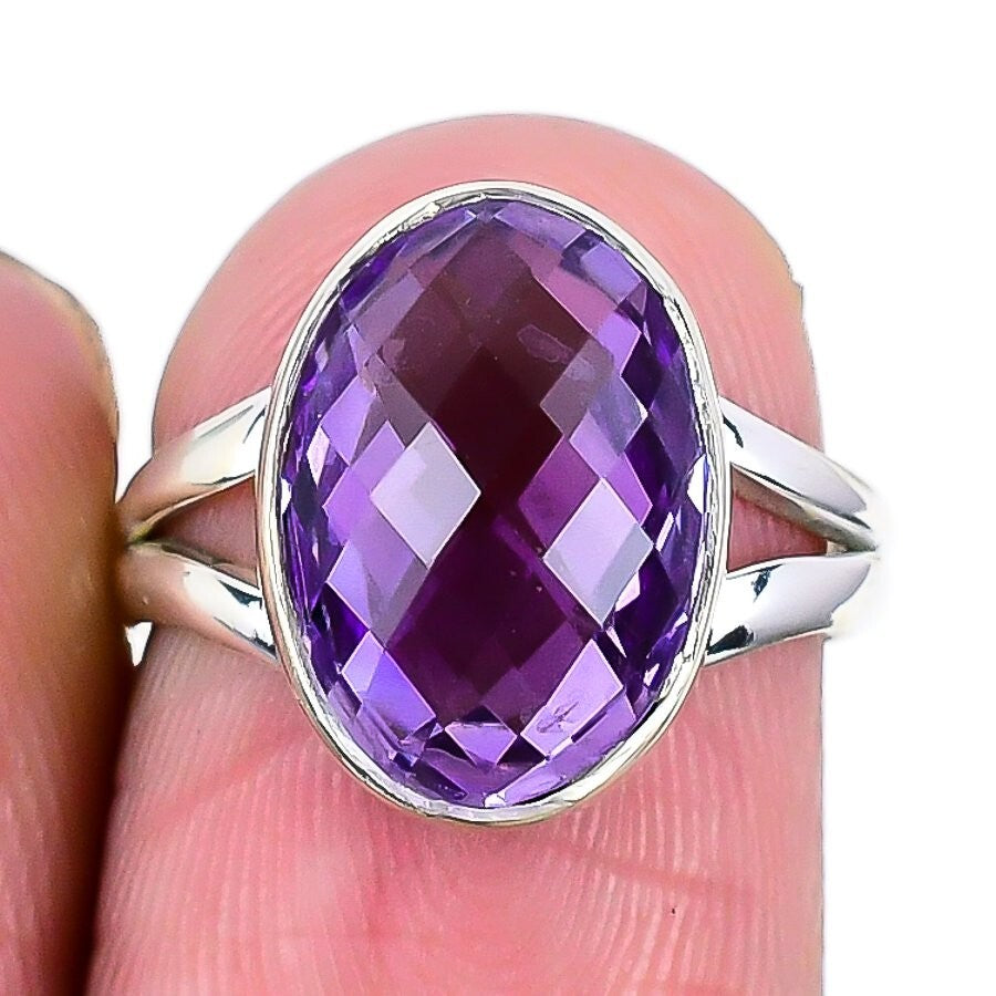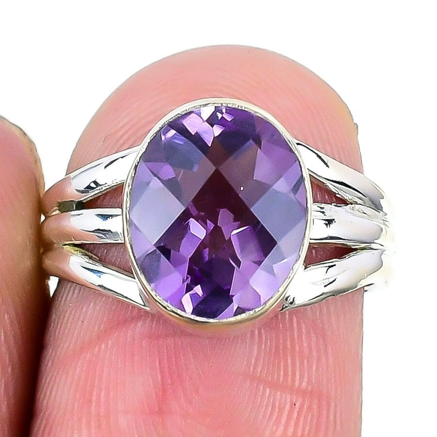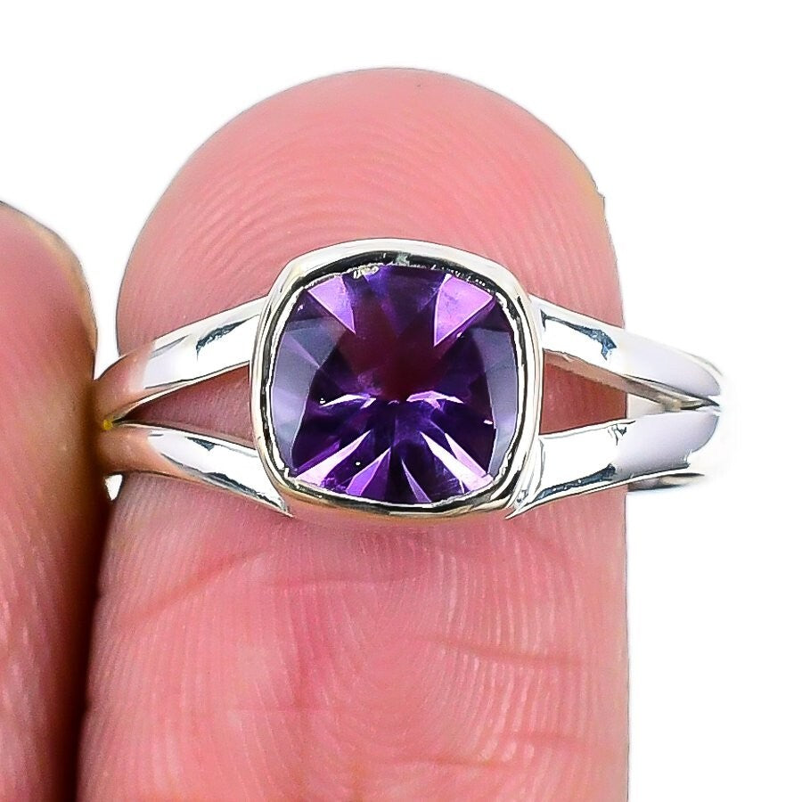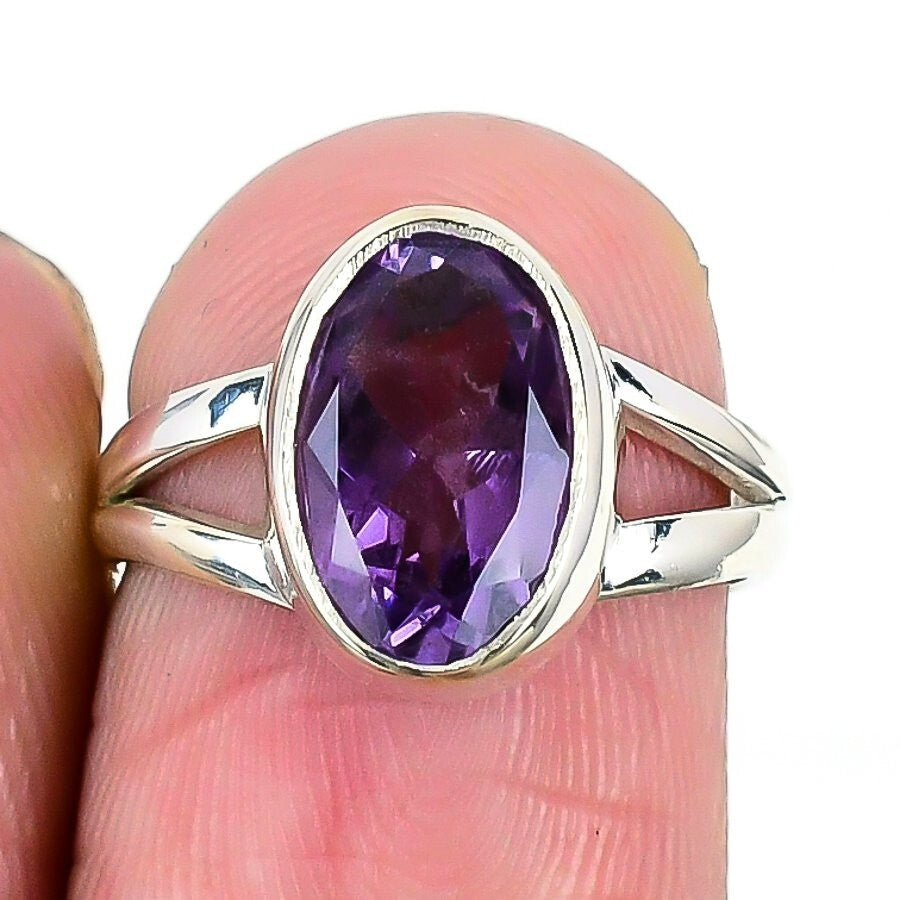 Amethyst Stone Solid Sterling Silver Engagement Cluster Wife Ring Jewelry Size 6
