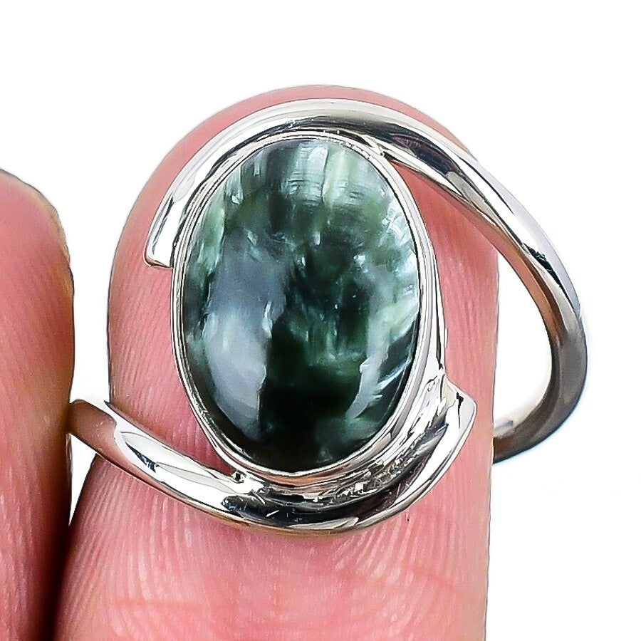 Seraphinite Gemstone New Cluster Daughter Ring Jewelry Size 8 925 Solid Silver