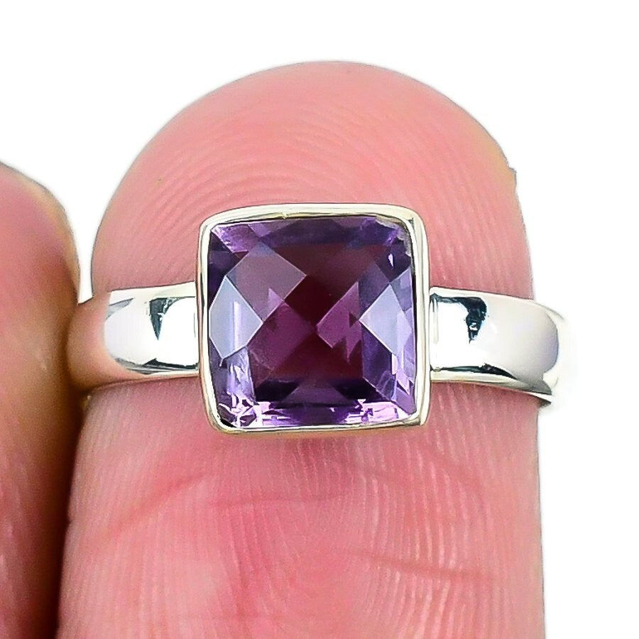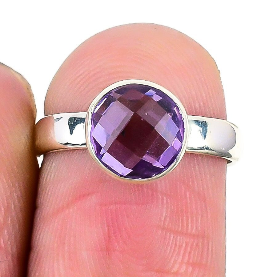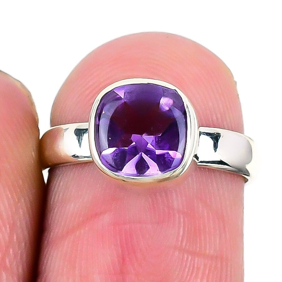 Amethyst Stone Sterling Silver Cluster Daughter Mothers Gift Boho Ring Size 5.5