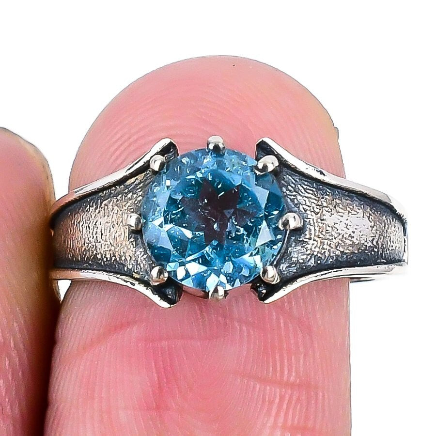 Swiss Blue Topaz Gemstone Sterling Silver Sister Birthday Cluster Ring Size 8