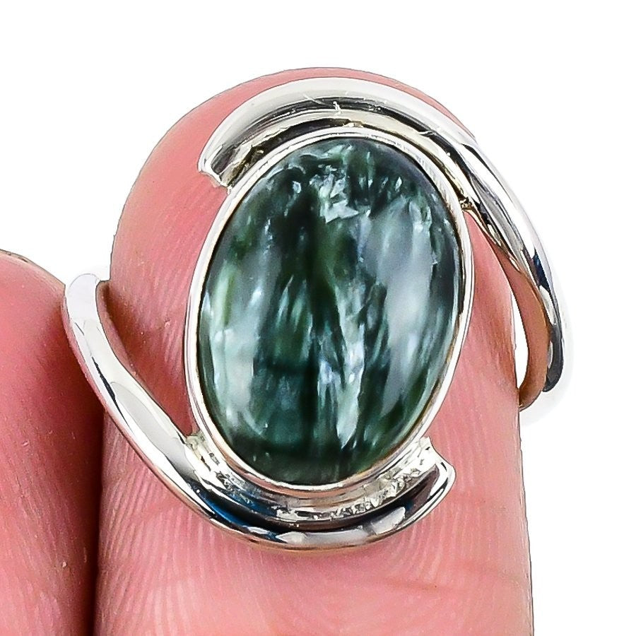 Seraphinite Gemstone Solid Silver New Boho Statement Mother Ring Jewelry Size 6