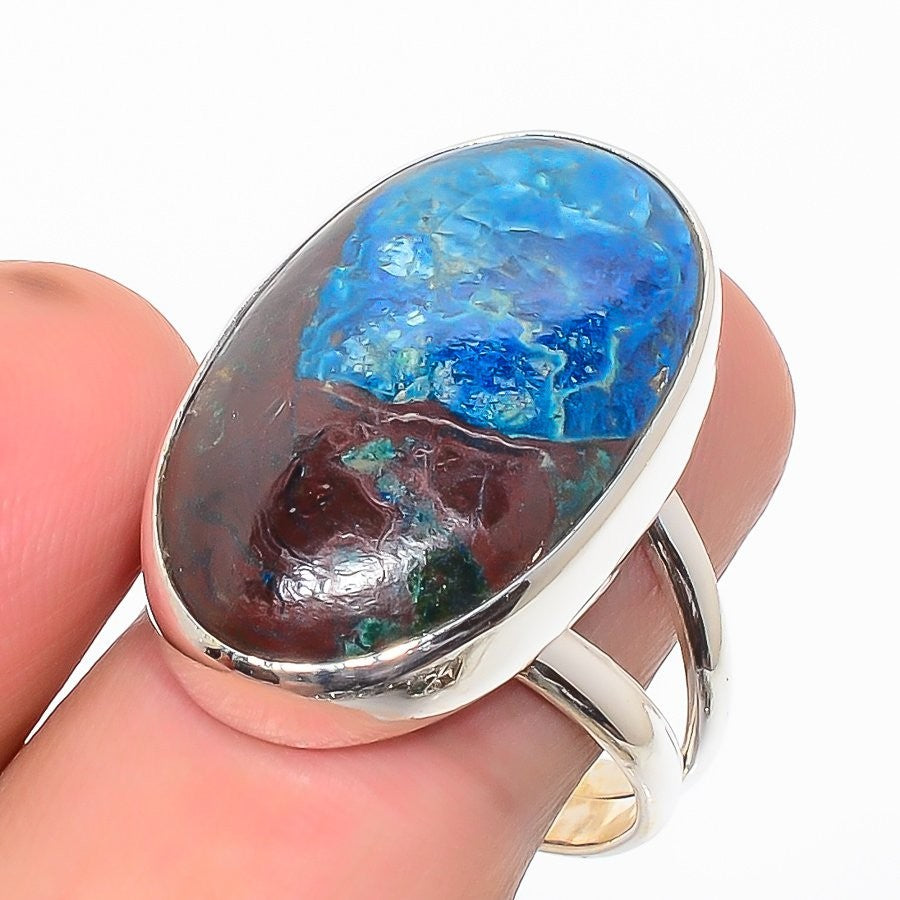 Shattuckaite Crysocolla Gemstone 925Ā SolidĀ Silver Daughter Cluster Ring Jewelry