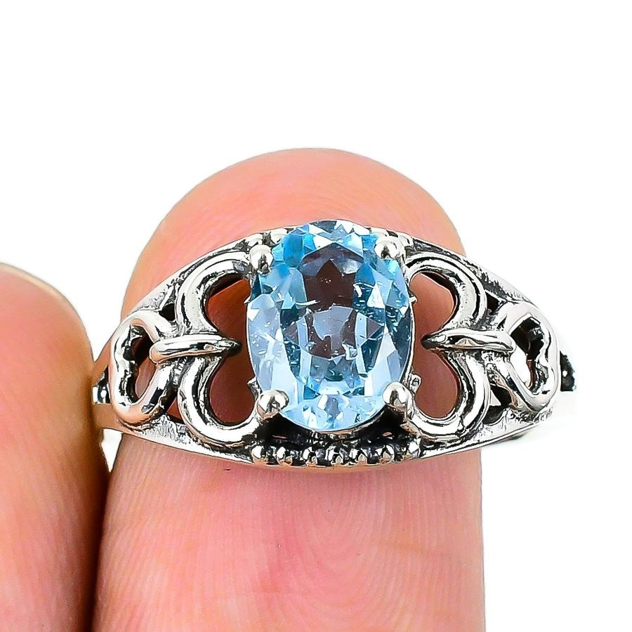 Natural Swiss Blue Topaz Solid Silver Statement Anniversary Mother Ring Size 8.5