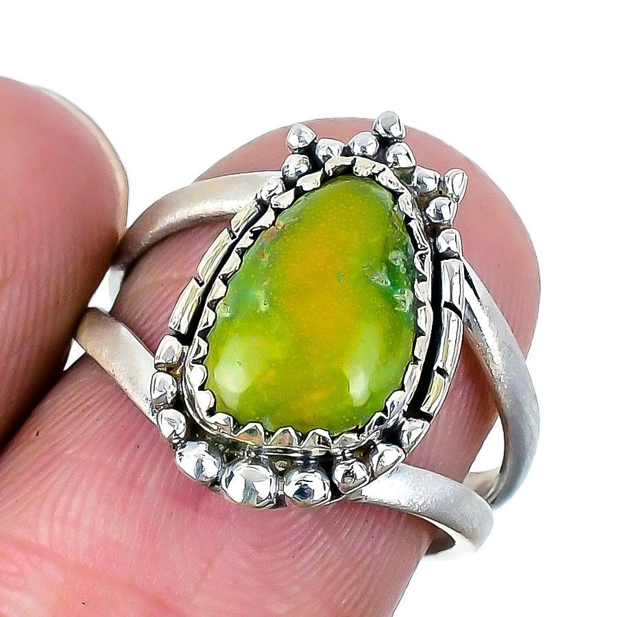 Natural Sonara Gold Turquoise Solid Sterling Silver Ethnic Statement Sister Ring