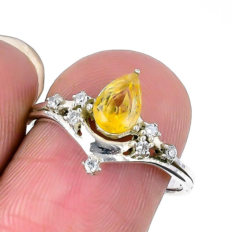 Natural Citrine Faceted Solid Silver Statement Daughters Day Wedding Ring Size 8