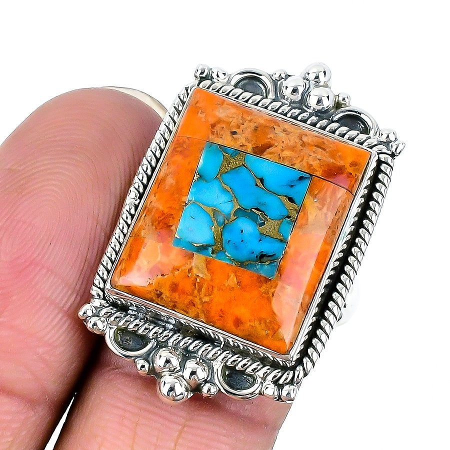 Spiny Oyster Matrix Gemstone Sterling Silver New Statement Ring Jewelry US 7.5