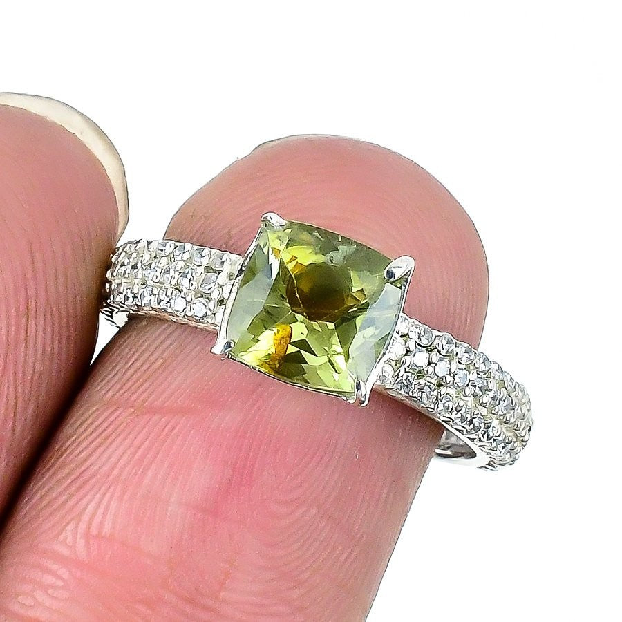 Peridot Faceted Stone Sterling Silver Engagement Statement Ring Jewelry Size 8