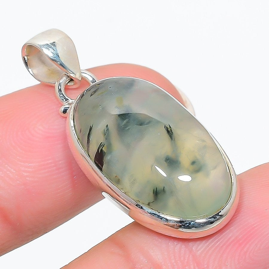 Prehnite Gemstone 925Ā SolidĀ Silver Trendy Birthday Wife Wedding Pendant Jewelry
