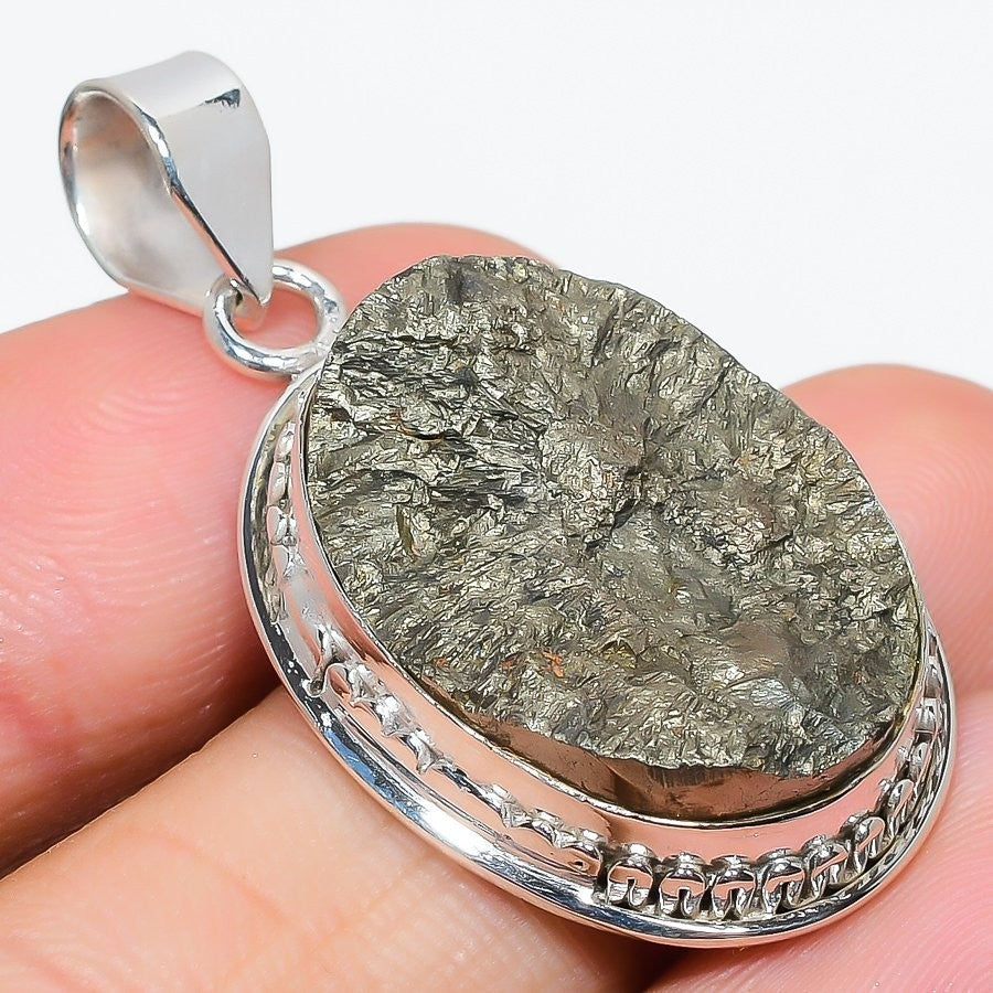 Natural Pyrite Agate Mother Engagement Art Deco Boho Pendant Jewelry 925 Silver