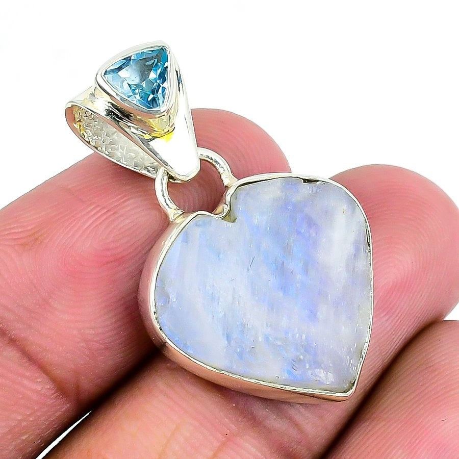 Rainbow Moonstone Stone Solid Sterling Silver Engagement Unique Mother Pendant