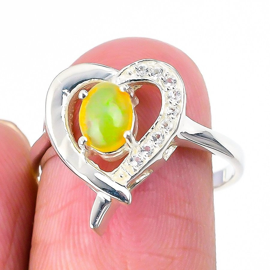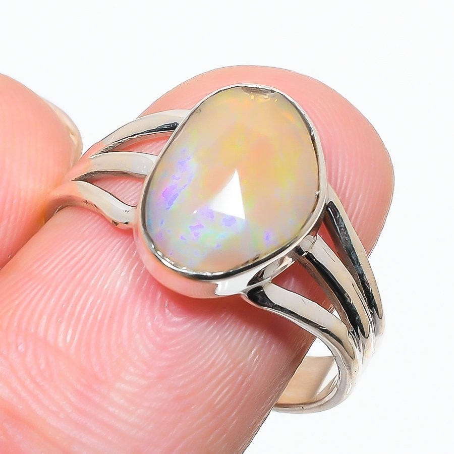 Ethiopian Opal Stone Solid Sterling Silver Wife Engagement Statement Ring Size 7